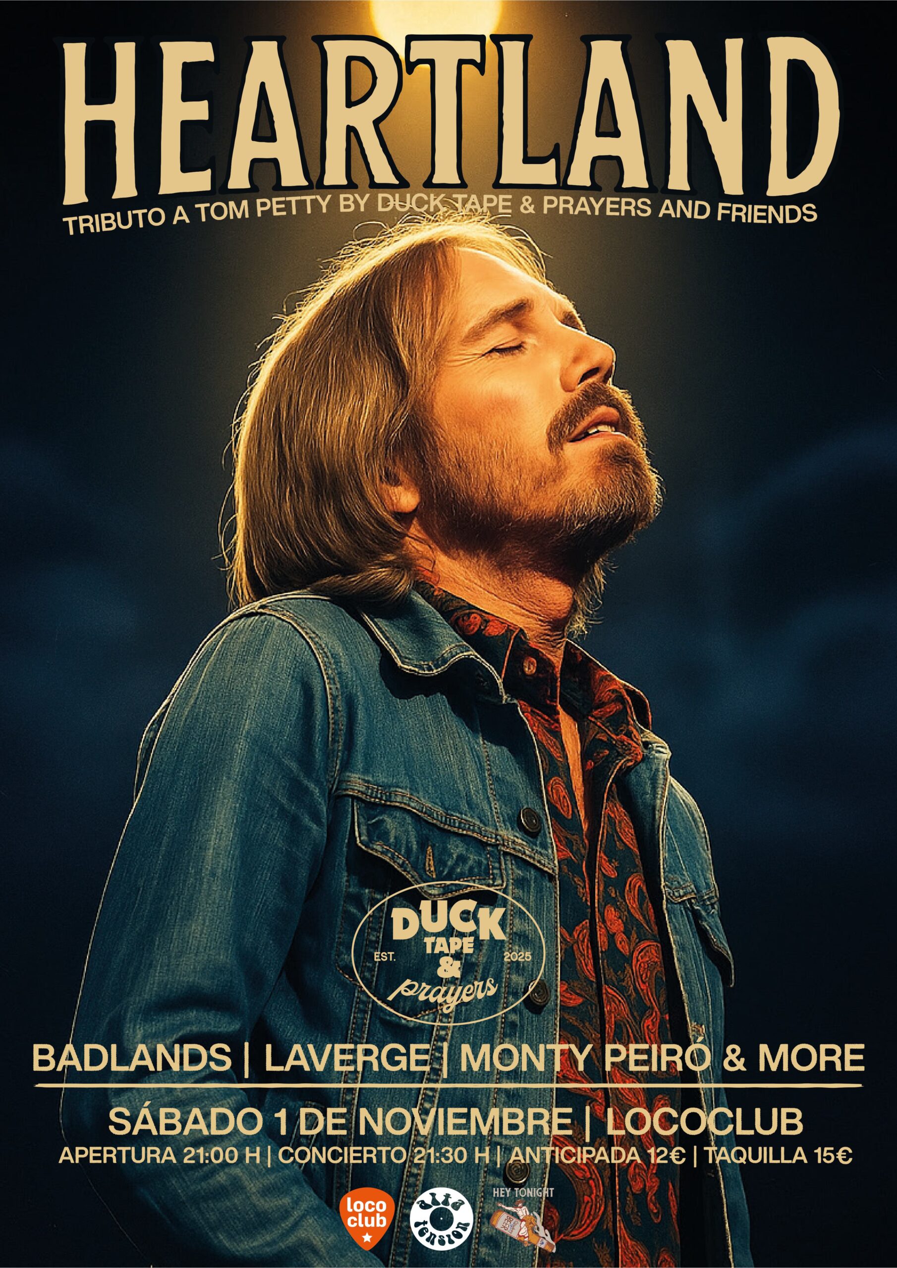 De la mano de DUCK TAPE & PRAYERS, banda de nueva formación pero cuyos integrantes llevan tiempo sobre los escenarios de toda España bajo los nombres de Red Buffalo e Indian Hawk, llega un nuevo tributo a Tom Petty, una de las mayores figuras del rock and roll, cabeza del movimiento Heartland junto a Springsteen y una de las grandes influencias para muchas generaciones de músicos.